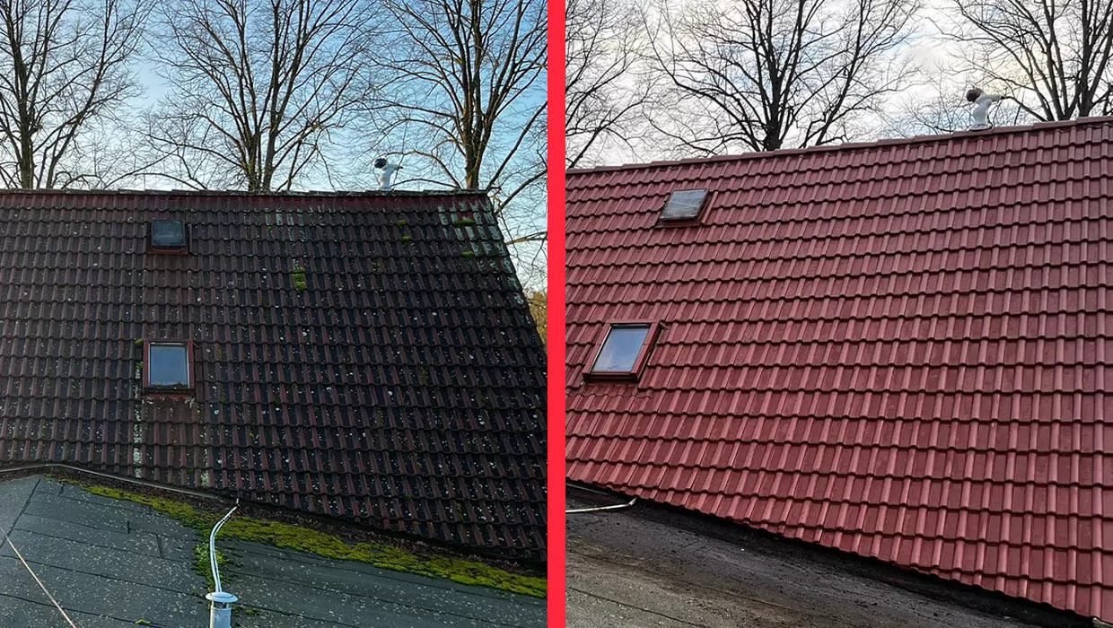 Eine weitere erfolgreiche Umsetzung von Renoskam war die professionelle Dachreinigung am Birkenweg in Wittenberge. Das Dach, das mit einer Schicht aus Schmutz und Moos bedeckt war, wurde sorgfältig gereinigt, wodurch seine Ästhetik wiederhergestellt und die Funktionalität der Dacheindeckung verbessert wurde. Dank des Einsatzes spezieller Techniken und Reinigungsmittel sieht das Dach jetzt wie neu aus. Der gesamte Prozess verlief reibungslos und sicher, und das Endergebnis hat die Erwartungen des Kunden übertroffen. Ein sauberes Dach ist nicht nur eine Frage der Optik, sondern verlängert auch die Lebensdauer der gesamten Konstruktion – mit Renoskam lohnt sich das!