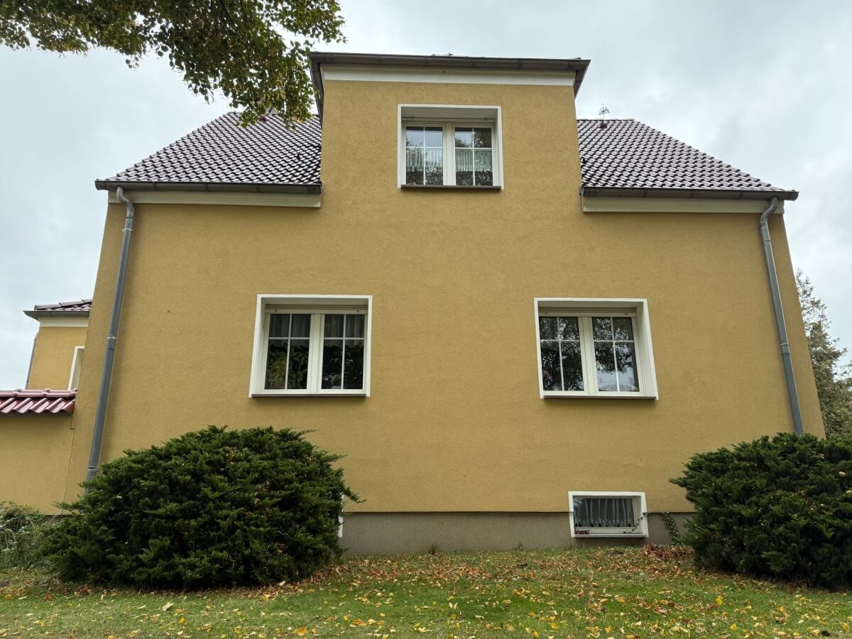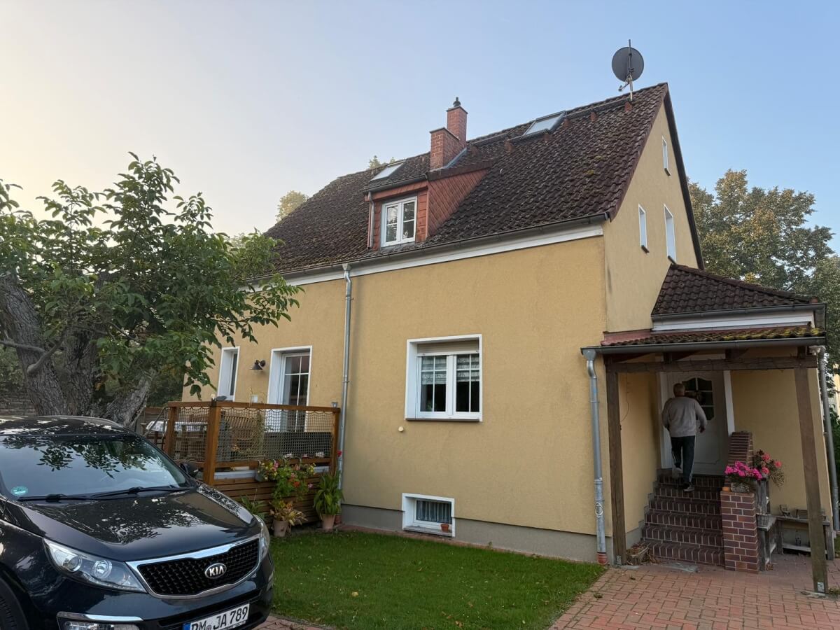 An diesem Einfamilienhaus haben wir eine komplette Dachsanierung durchgeführt: gründliche Reinigung der Dachziegel und anschließende Beschichtung mit spezieller Dachfarbe. Die alten Ziegel waren stark verschmutzt, vermoost und insgesamt matt, was das Erscheinungsbild des Hauses deutlich beeinträchtigte.