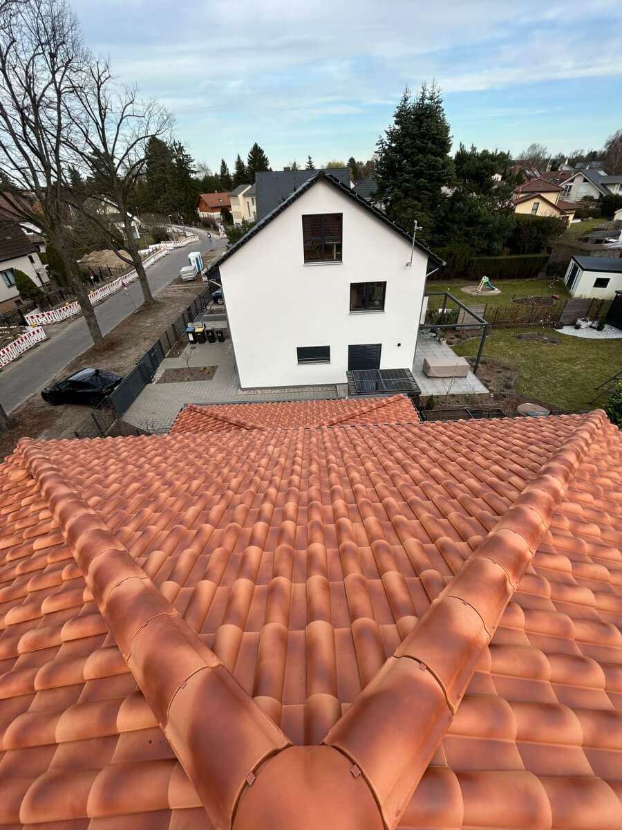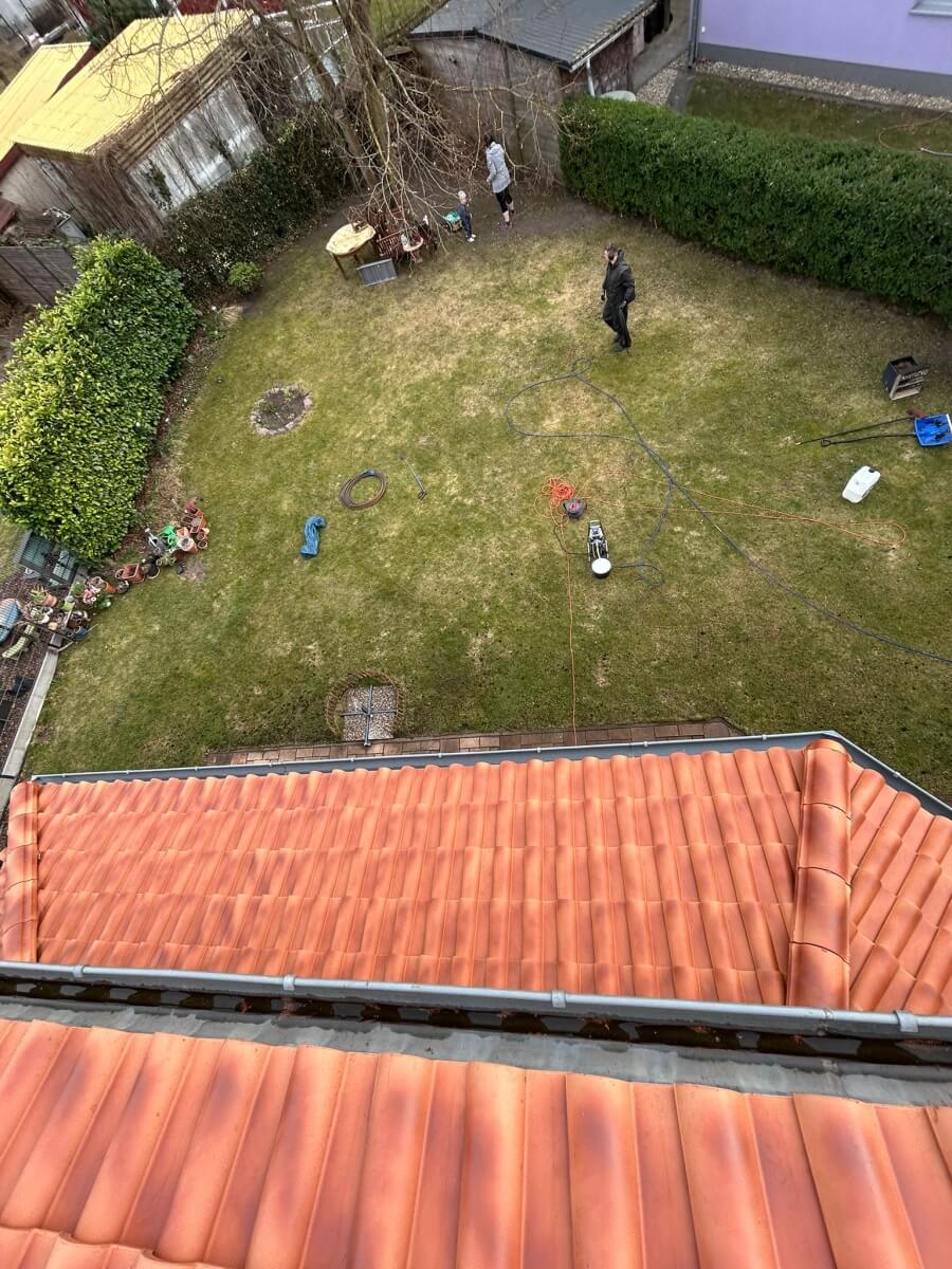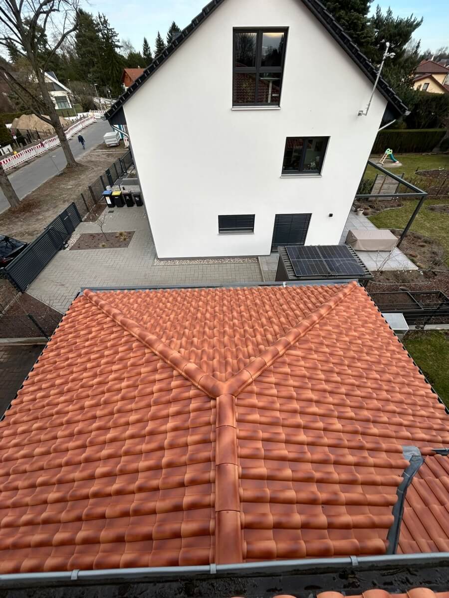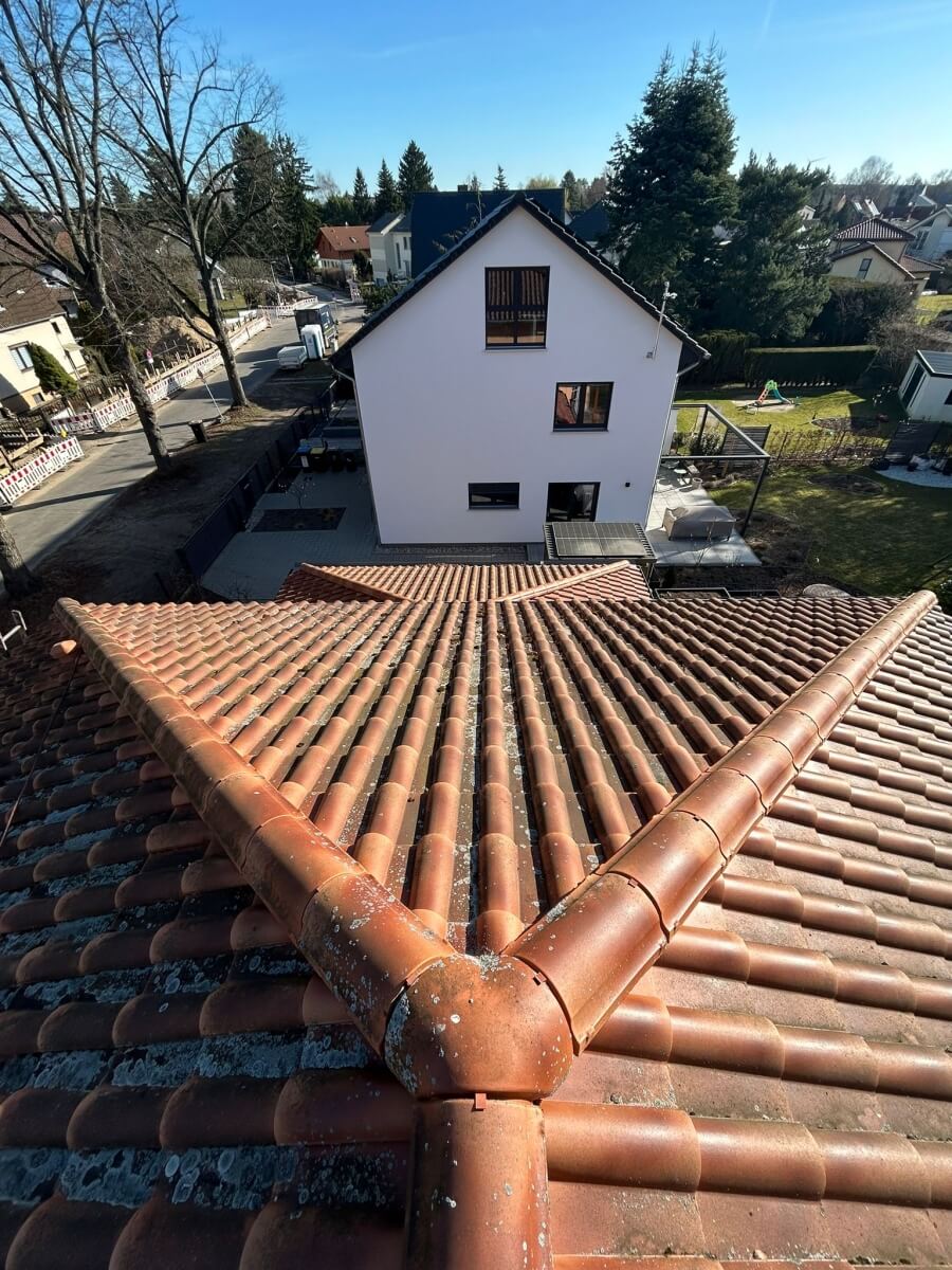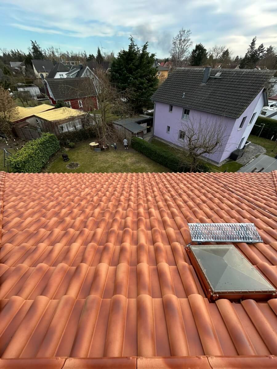In Berlin hat ein weiterer Kunde unsere 1.500-Euro-Aktion genutzt und konnte bereits nach nur einem Arbeitstag einen deutlich sichtbaren Unterschied an seinem Dach erkennen. Vor Beginn der Arbeiten war die Dachfläche verschmutzt, teilweise nachgedunkelt und von Ablagerungen geprägt, sodass die ursprüngliche Farbwirkung der Dachziegel kaum noch zur Geltung kam. Insgesamt wirkte das Dach gealtert und brauchte eine professionelle Aufbereitung.