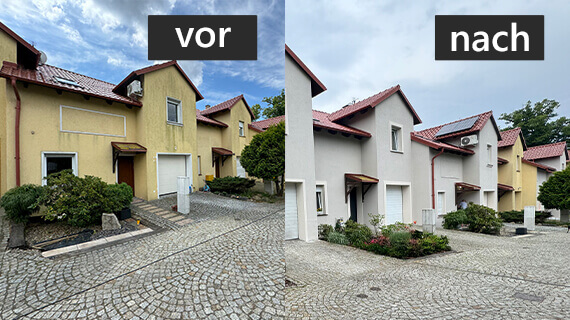 Fassadenanstrich der Reihenhäuser – Grünberg Fassadenreinigung & Fassaden streichen Vorher / Nachher Vergleich