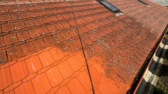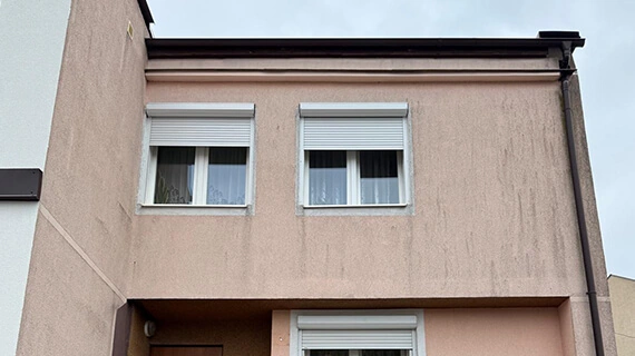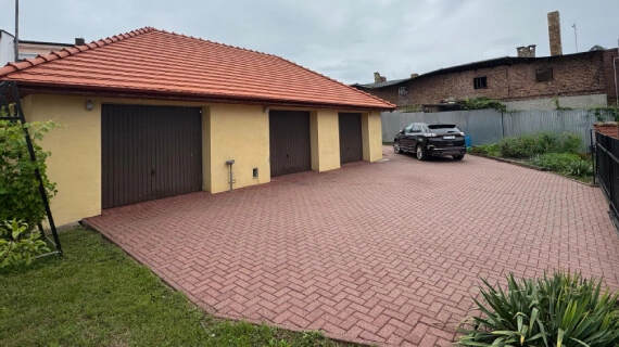 Fassadenreinigung, Reinigung der Pflastersteine und des Garagendachs in Crossen an der Oder Fassadenreinigung & Fassaden streichen, Pflastersteinreinigung Vorher / Nachher Vergleich