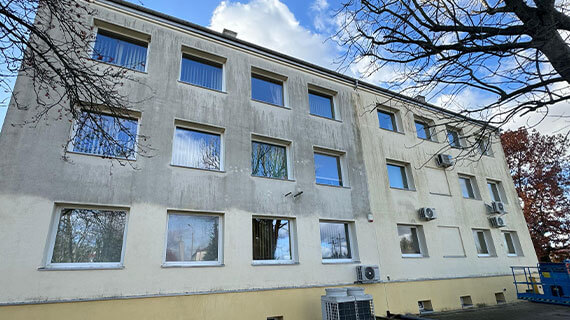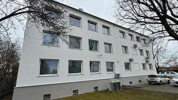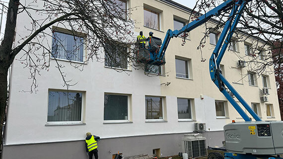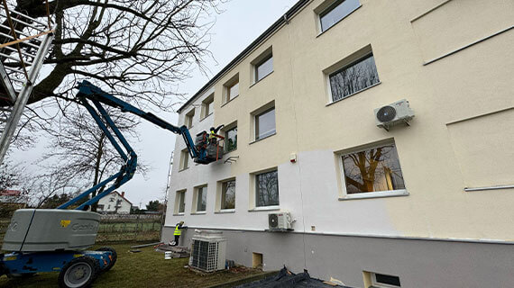 Fassadenreinigung – und anstrich von Energa Gebäude in Mlawa Fassadenreinigung & Fassaden streichen Vorher / Nachher Vergleich
