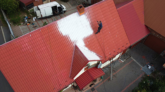Wir haben es geschafft, das Problem zu lösen. In diesem Fall haben wir nach der Reinigung des Dachs zusätzlich eine Grundierung für Blechdächer aufgetragen und das Dach anschließend zweimal neu lackiert.