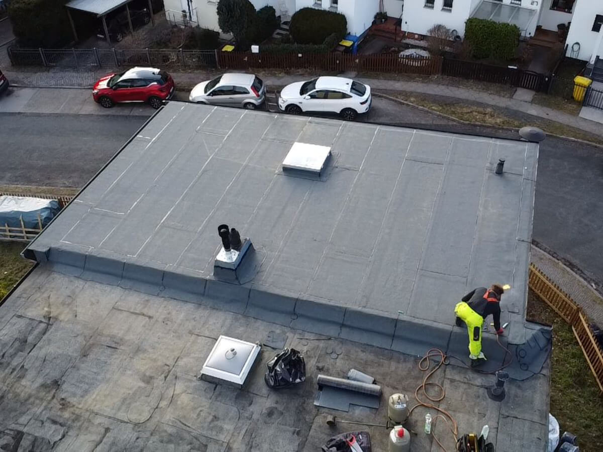 Die komplette Ausführung dauerte 3 Arbeitstage. Das Ergebnis ist ein sauber gedämmtes, dichtes und technisch hochwertig saniertes Flachdach.